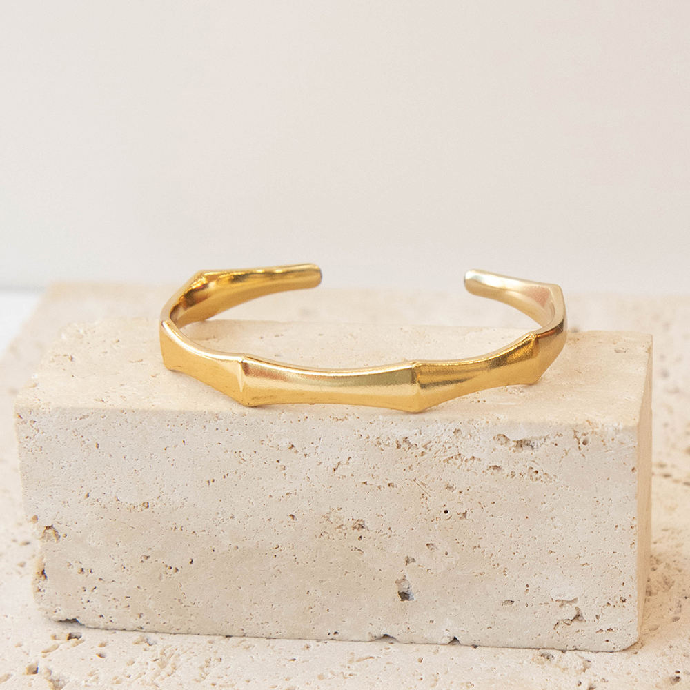 Ένα όμορφο βραχιόλι χειροπέδα φτιαγμένο από επιχρυσωμένο ή επαργυρωμένο ορείχαλκο.
