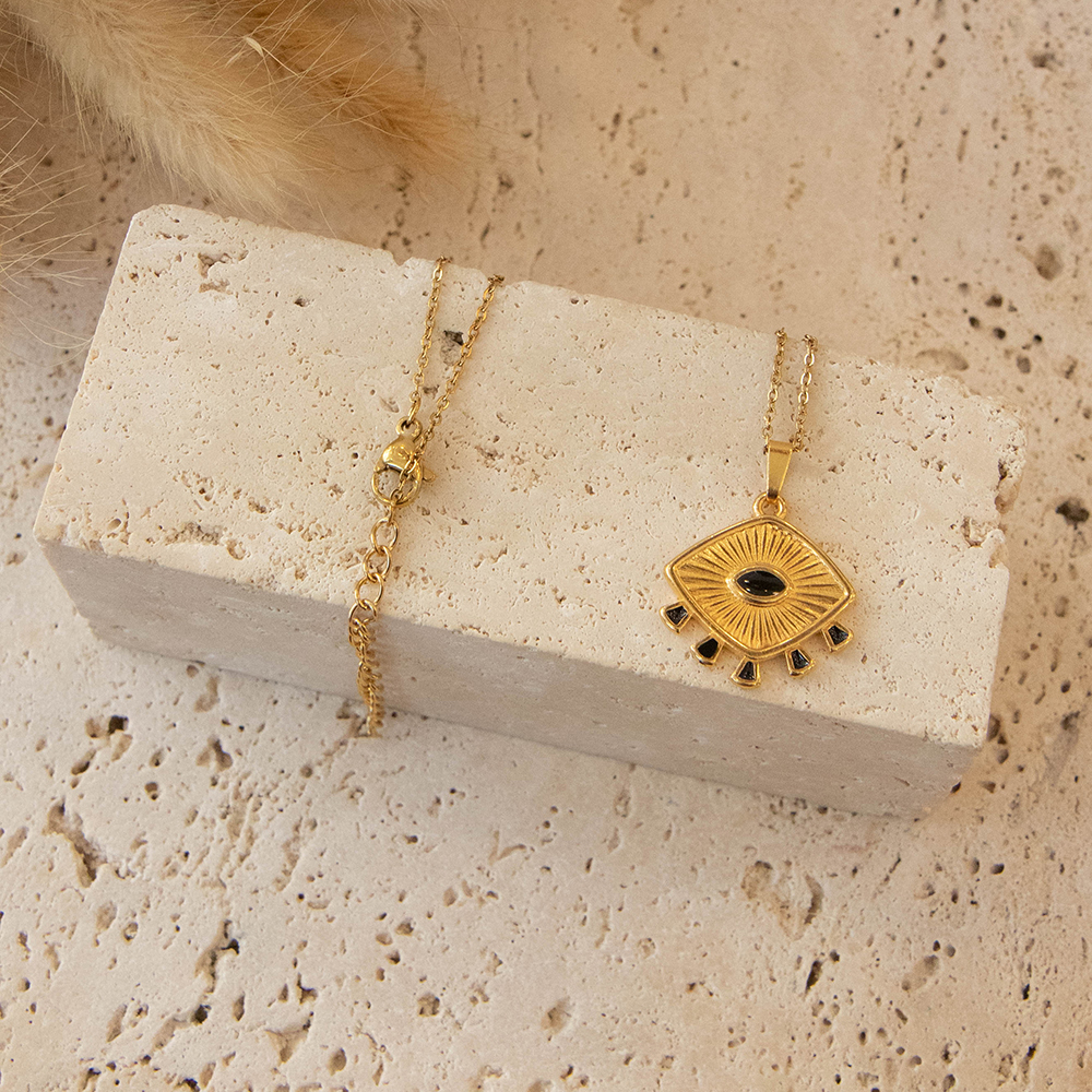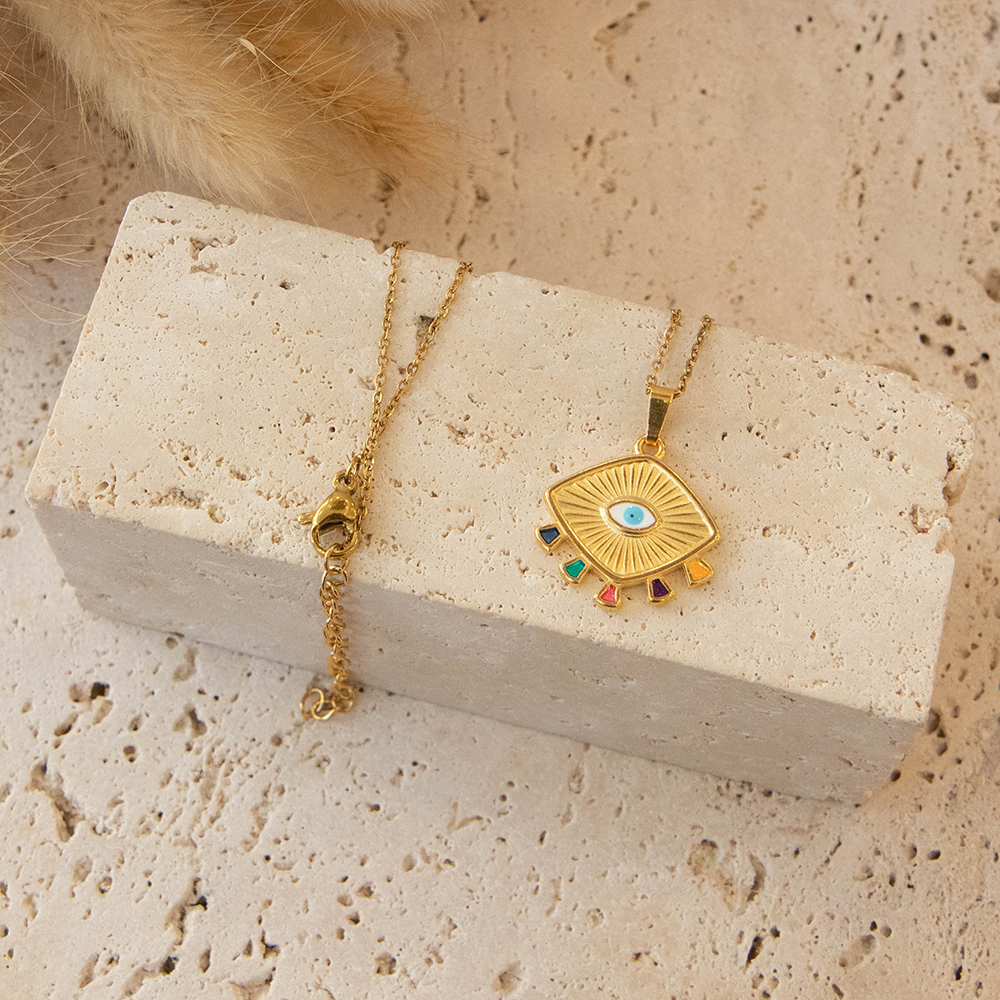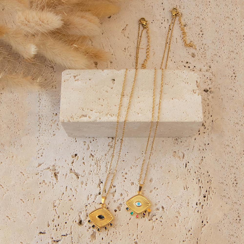 This lovely necklace is made in my studio in Greece from a gold plated charm with enamel detail and a chain made out of steel.